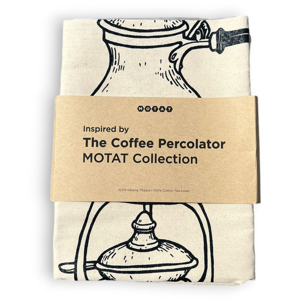 Made with 100% cotton, this tea towel is not only practical but also a beautiful tribute to a small part of the MOTAT collection. Perfect for coffee lovers, it's a lovely way to add a touch of vintage charm to your daily routine.