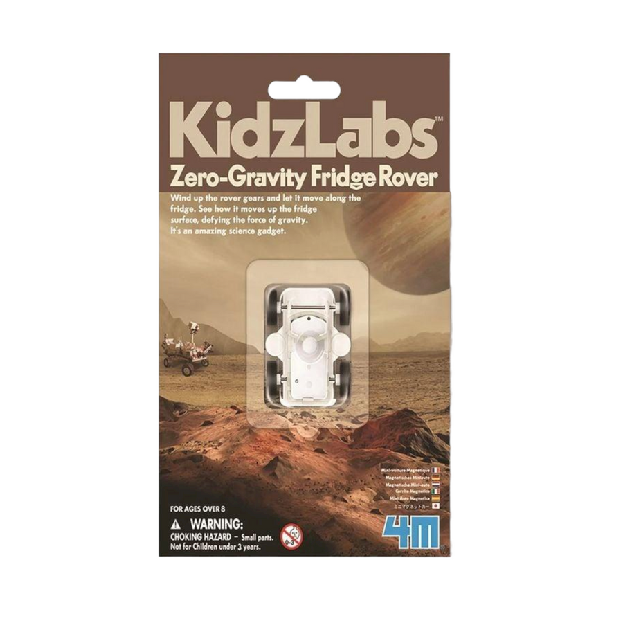 Wind up the rover gear and let it go on the fridge. Watch it grip and go up on the fridge surface, defying the force of gravity. It's an amazing science gadget.