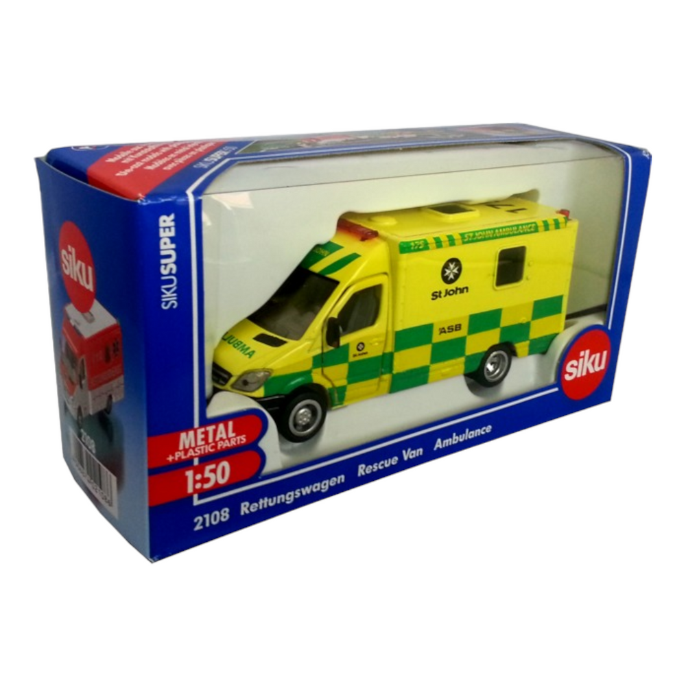 Ready to save the day? This Siku model is a detailed and authentic model of a NZ St Johns Ambulance, perfect for playtime or collecting. This bigger model includes opening back and side sliding door and a detailed interior. The stretcher even extends out the back!